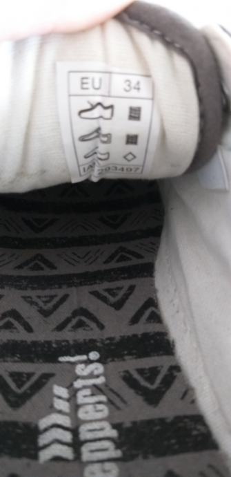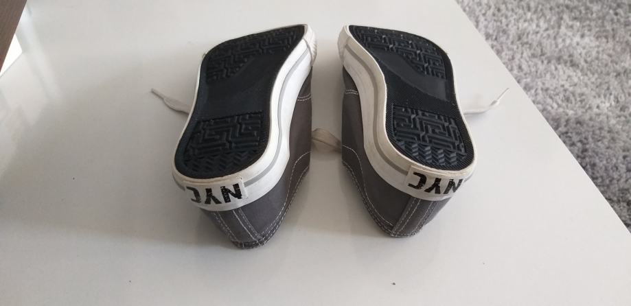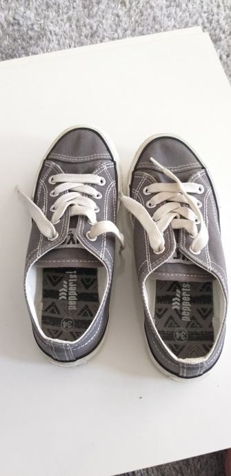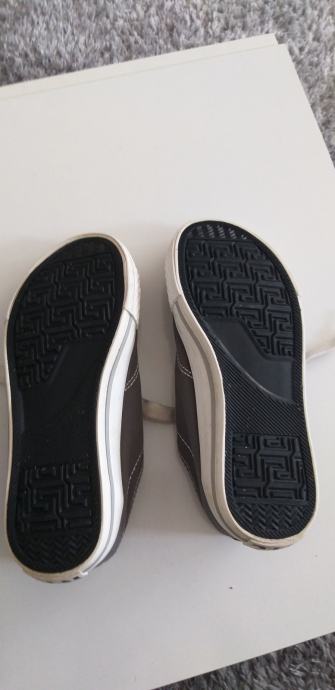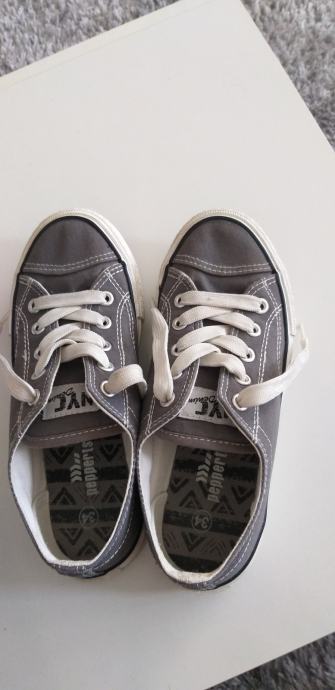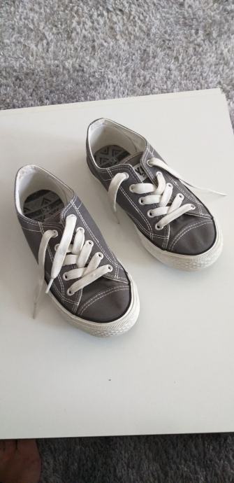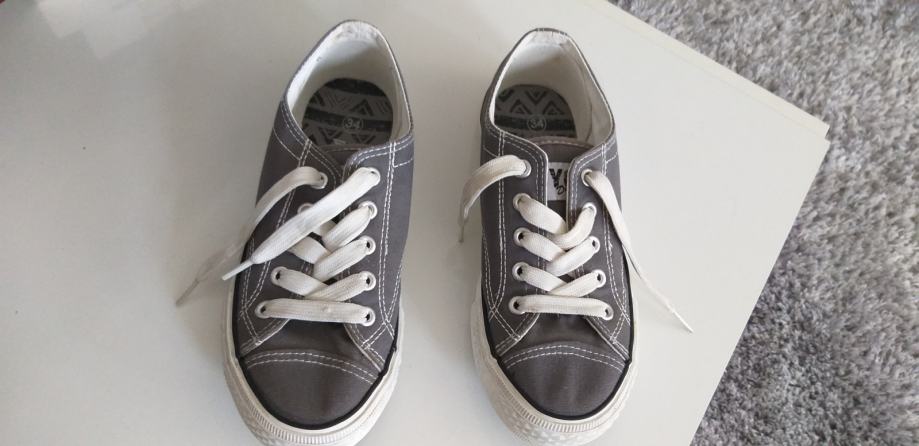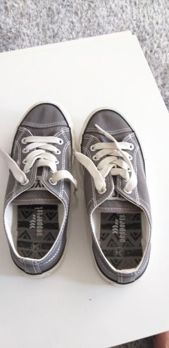 Prodajem dječje tenisice br.34, siva boja. Imaju gumu koja drži tenisicu kod zgloba, a dodatna fiksacija može se ojačati sa vezicama.