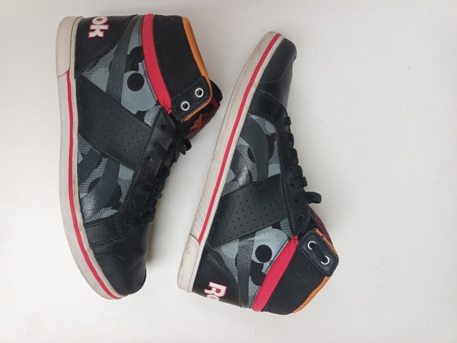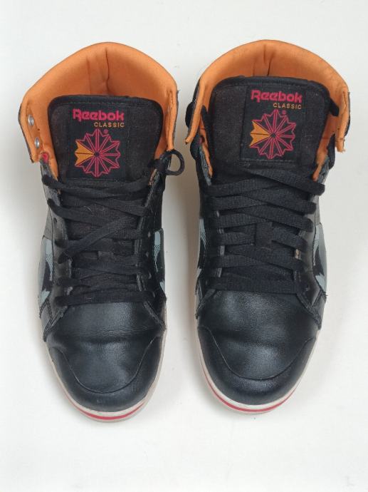 Visoke crne tenisice Reebok 37 nošene svega par puta samo do škole pa su u odličnom stanju bez vidljivih tragova kao nove, imaju po sebi vojni masking uzorak, potplat ne ostavlja recke, gazište je 24cm