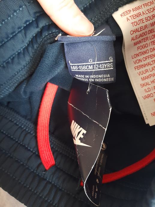 Tamnoplavi potpuno novi s etiketom dječji donji dio trenirke Nike. Vel 146-152. Dužina od vrha pasice do dolje 93cm, dužina međunožja 71cm