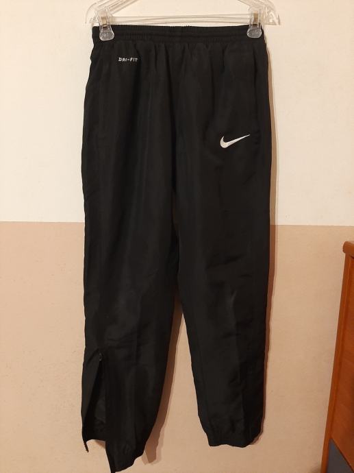 Crni novi donji dio trenirke Nike. Obućeni jednom, ali ipak nam je premali. Na kraju nogavica zatvarač. U struku s vezica za regulaciju. Podstava s mrežicom. Vel. 122-128. Dužina nogavice od vrha pasice do dolje 76cm,dužina međunožje 57cm.