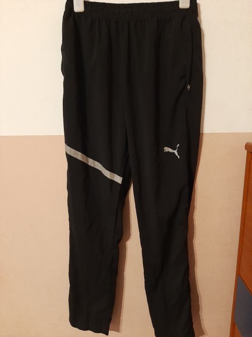 Crni skroz tanki donji dio trenerke Puma. Nošen svega par puta, kao novi. Na kraju nogavica zatvarač. Vrlo udobne i lagane. Vel. S
