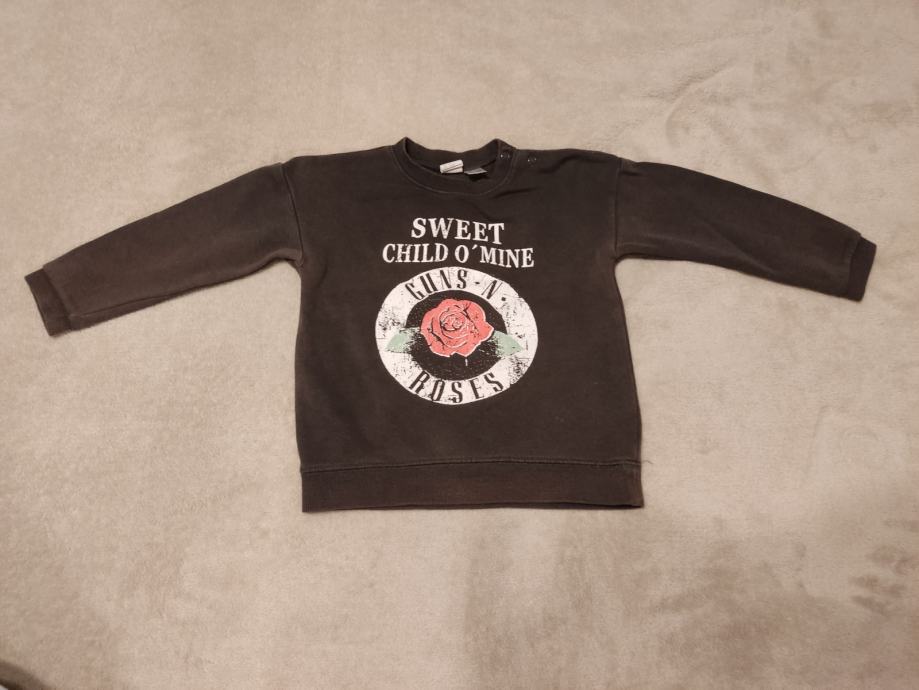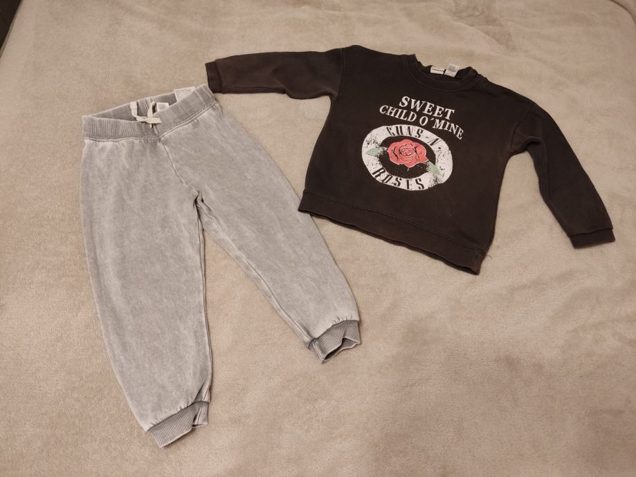 Dječja trenirka broj 98, Sweet child o' mine, H&M. Majica ima tragove sušenja na suncu, a hlače jedno oštećenje. Oboje je poslikano. Pogledajte i ostale moje oglase, na više kupljenih stvari popust. U Zagrebu i Karlovcu je moguća primopredaja.