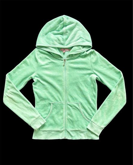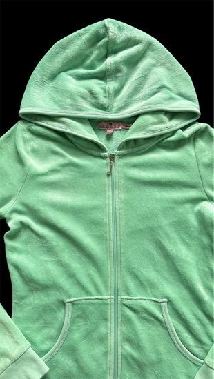 Juicy Couture pamučni pliš hoodie, duks, gornji dio trenirke, vel 12, može do 158, XXS. Predivan pamučni pliš, 77% pamuk, starija kolekcija, povremeno nošen, odlično očuvan. Kupljen u USA, skupo plaćen. Hoodica ide još uvijek na moju curku koja je 165 cm visoka, rukavi su dosta dugi.