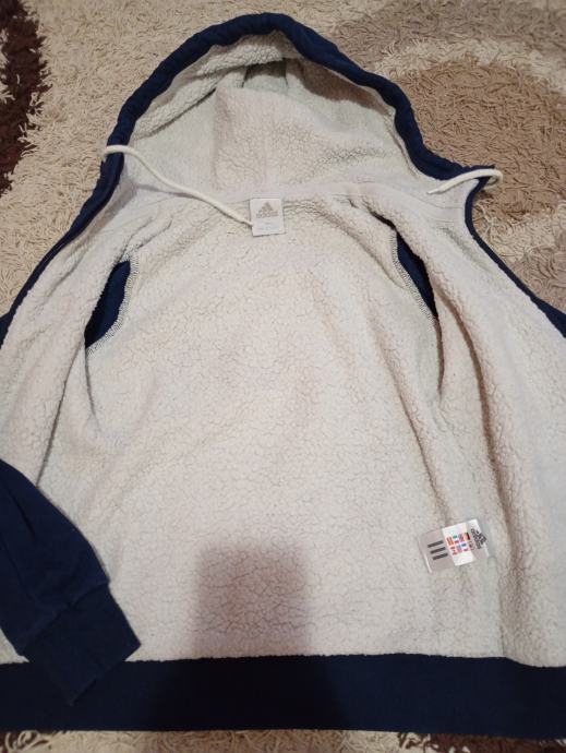 Tamnoplava Adidas majica sa kapuljačom,pretopla,cijela u krznu.