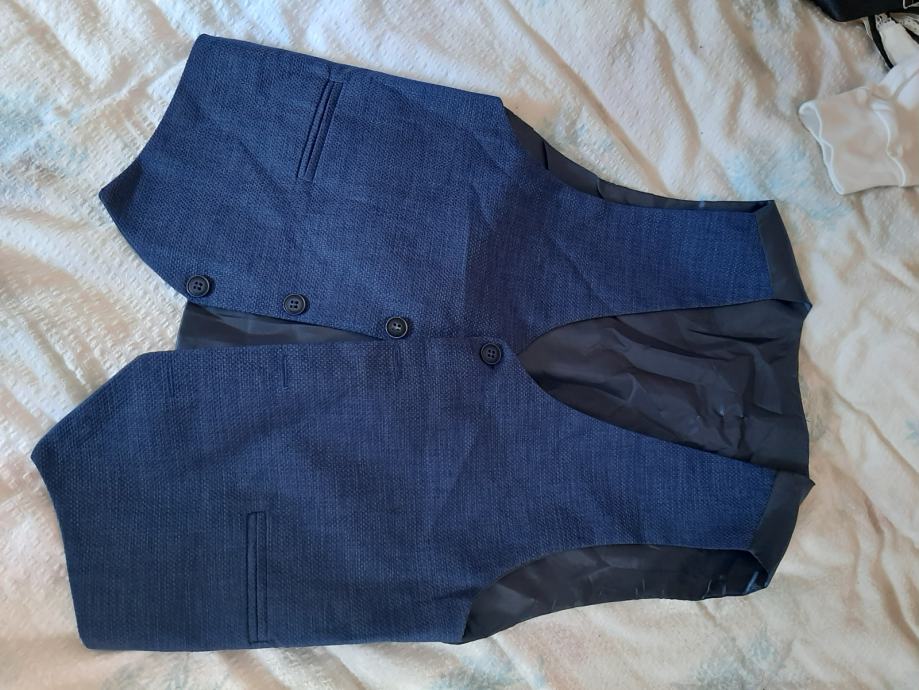 Dječji tamnoplavi svečani prsluk. Nošen jednom. Vel. 152