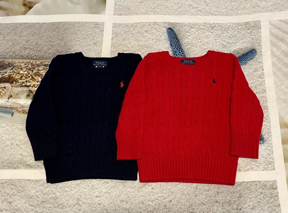 Prodajem dva original džempera Ralph Lauren Polo u veličini 2 godine, tj. 92-98 za 2 do 3 godine starosti ali može se već nositi i od 1,5 godine. Dva puta obučeni, maksimalno očuvani i bez ikakvih oštećenja. Svaki prodajem za 20€. Crvena vestica je prodana.