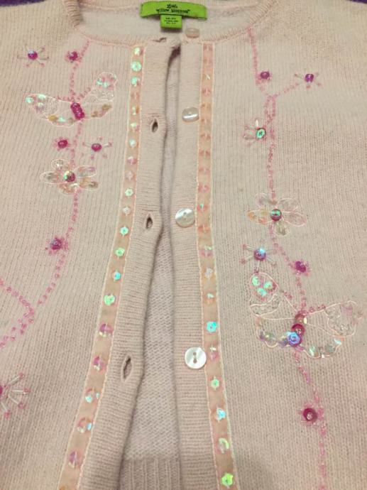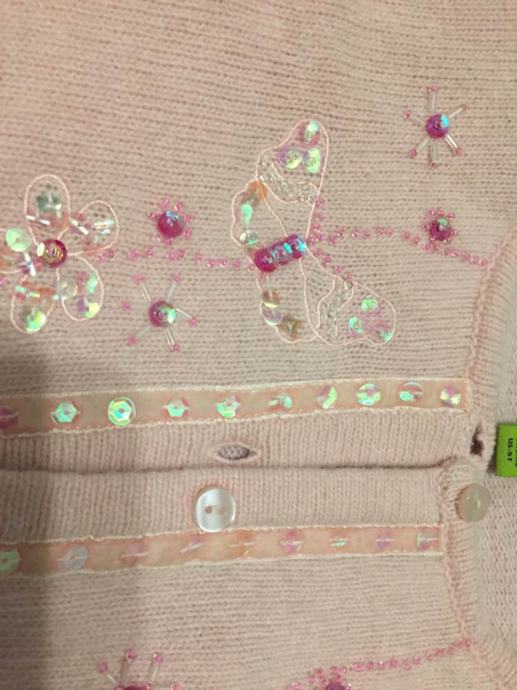 Predivna nježno roza vrstica, sa našivenim aplikacijama i sjajnim detaljima koji sjaje kao draguljići.