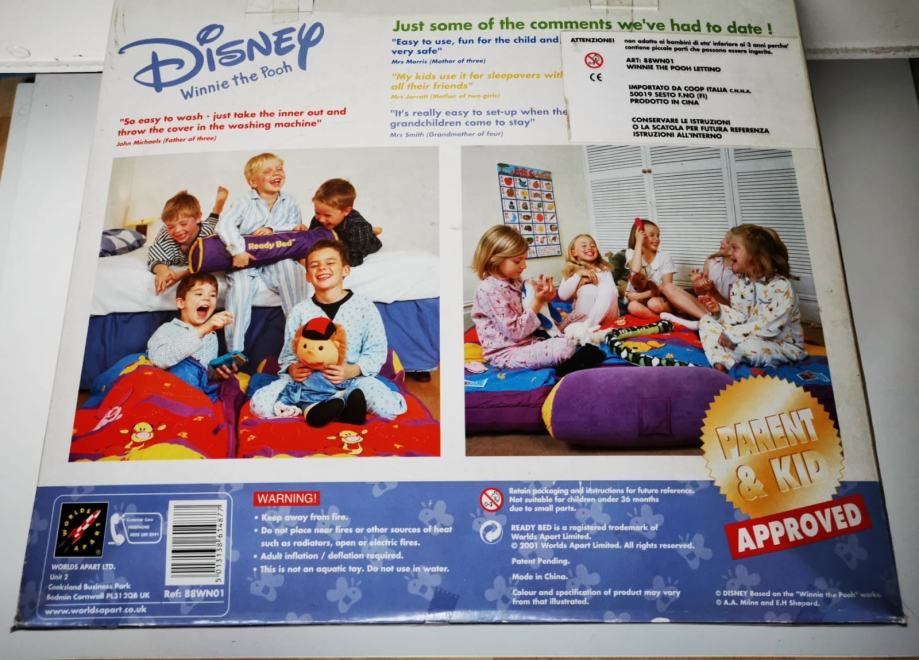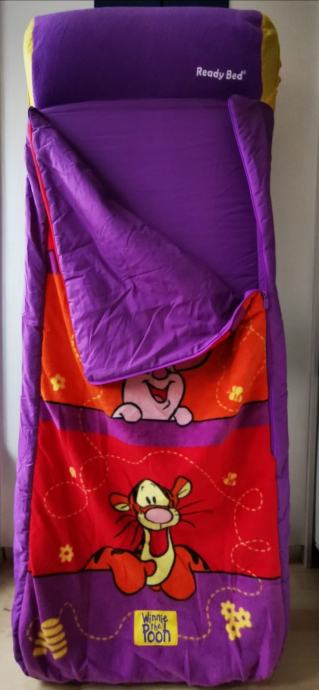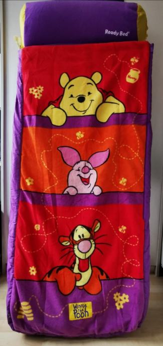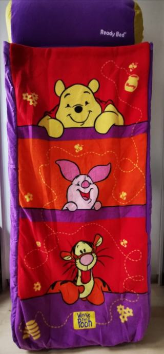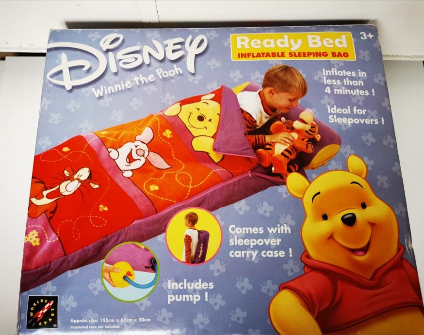 Dječja vreća za spavanje na napuhavanje Winnie the Pooh. Uz vreću dolaze pumpa i torba za spremanje. Dimenzije su 155cm x 67cm x 20cm