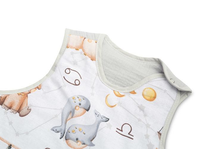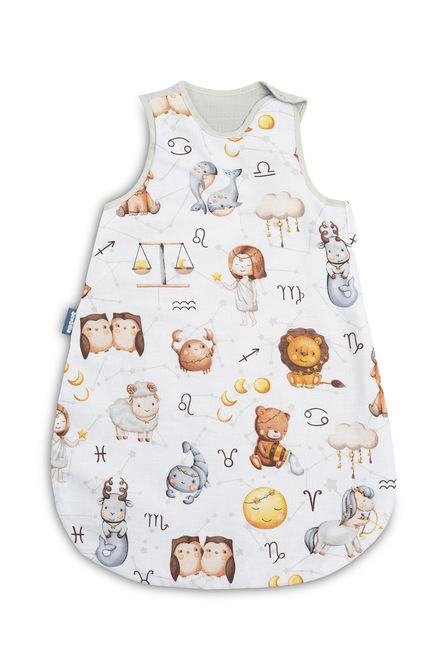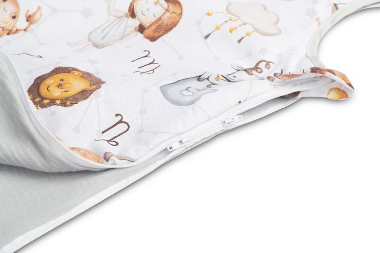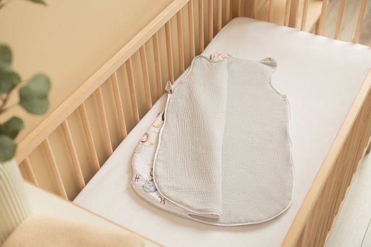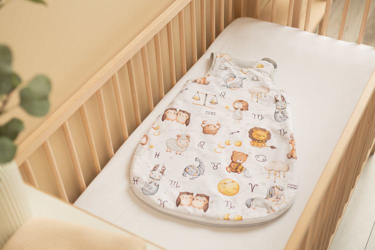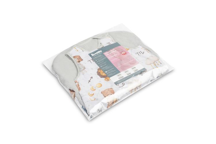Vreća za spavanje služit će djeci od prvih dana života (0-9 mjeseci), pružajući im toplinu i sigurnost. Sašivena je od mekanog pamuka punjenog podstavom. Unutrašnjost i stražnji dio vreće za spavanje izrađeni su od muslin pamuka. Proizvod ne sadrži tvrde elemente koji bi mogli iritirati dječju kožu. Opremljena je dvostranim patentnim zatvaračem koji se vodi oko vreće za spavanje, što vam omogućuje promjenu pelene bez vađenja djeteta iz vreće za spavanje.