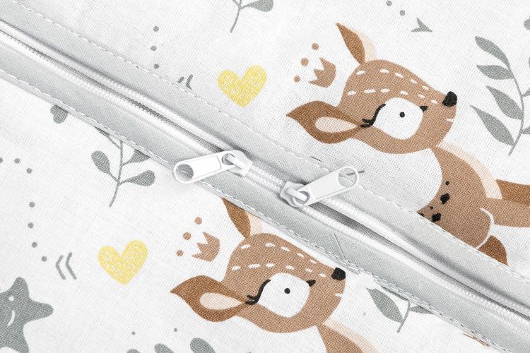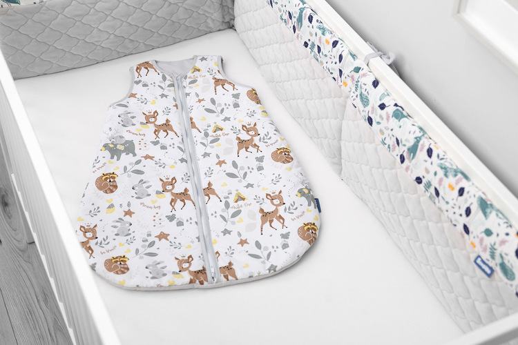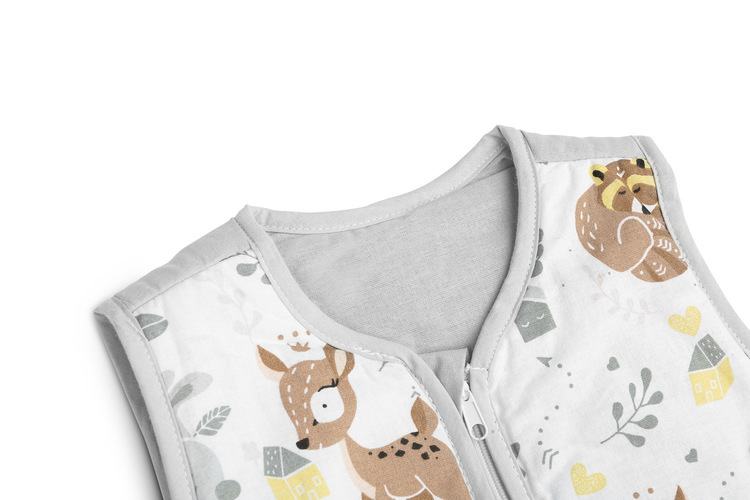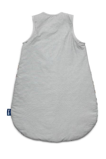 Izrađena je od mekanog pamuka punjenog podlogom. Ne sadrži tvrde elemente koji iritiraju bebinu kožu. Vreća za spavanje opremljena je dvostranim patentnim zatvaračem, pričvršćenim oko vrata, što vam omogućuje promjenu pelene bez vađenja bebe iz vreće za spavanje. Odgovara drugim proizvodima naše marke.