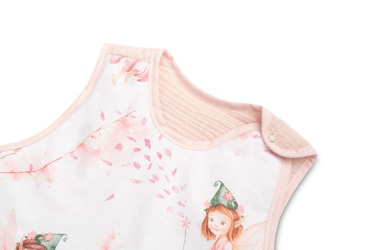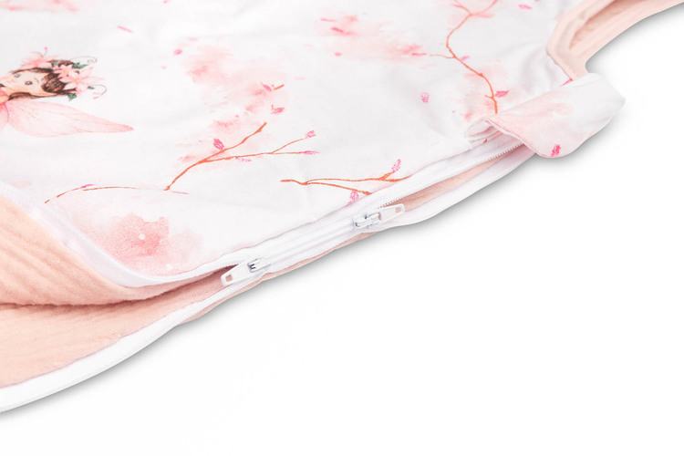 Vreća za spavanje veličine M poslužit će malo starijoj djeci (9-18 mjeseci) pružajući im toplinu i sigurnost. Sašivena je od mekanog pamuka punjenog podstavom. Unutrašnjost i stražnji dio vreće za spavanje izrađeni su od muslin pamuka. Proizvod ne sadrži tvrde elemente koji bi mogli iritirati dječju kožu. Opremljena je dvostranim patentnim zatvaračem koji se vodi oko vreće za spavanje, što vam omogućuje promjenu pelene bez vađenja djeteta iz vreće za spavanje.