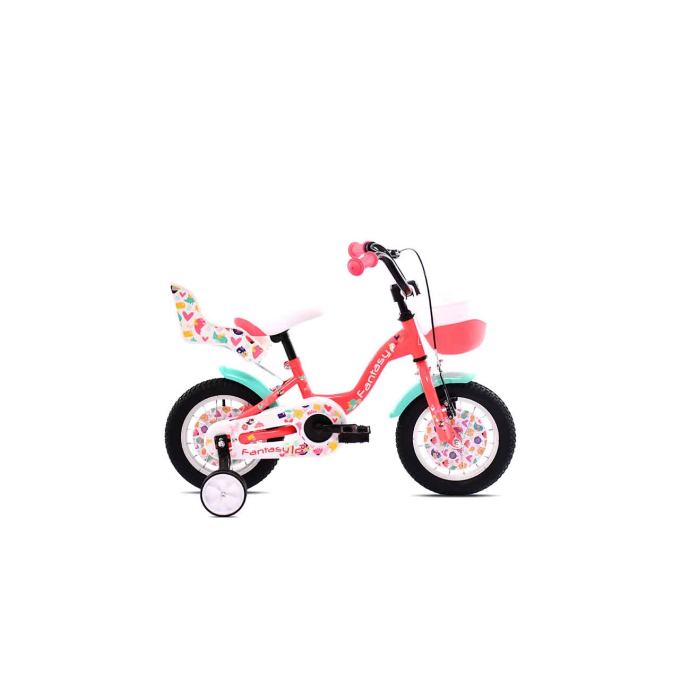 Dječji bicikl veličine 12". Prednja kočnica V-brake, zadnja kočnica na pedali. Bicikli dolaze u kartonskim kutijama sa slikom A4 formata u boji, 98% sastavljeni.