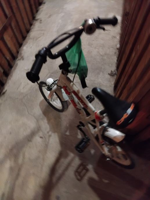 Biciklić prednja i zadnja kocnica,pune gume 12 inča, pomocni kotači, ispravan.