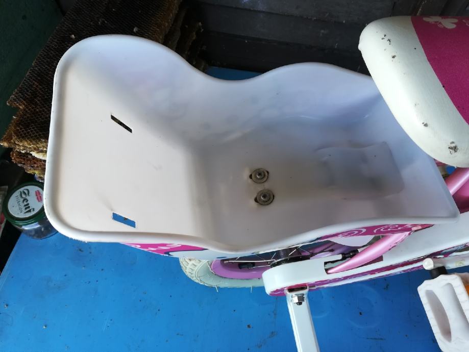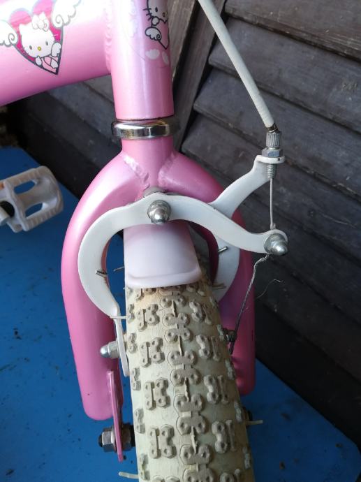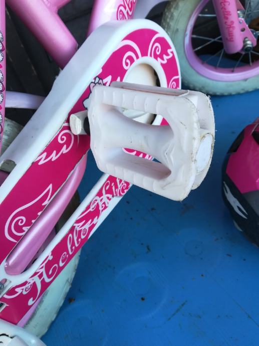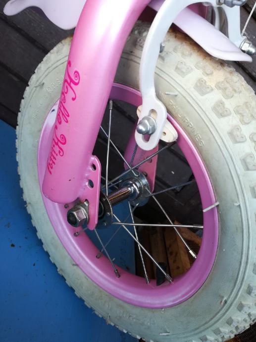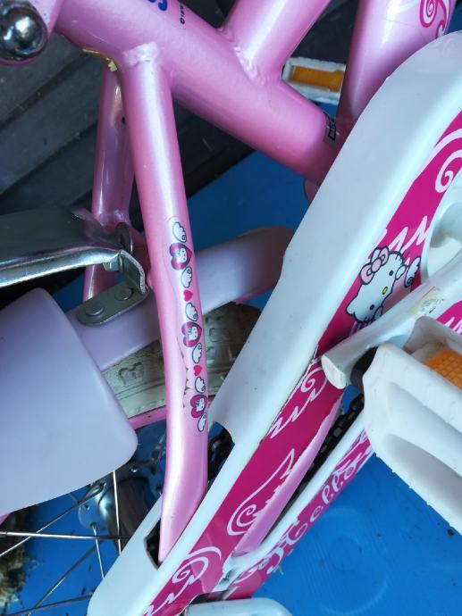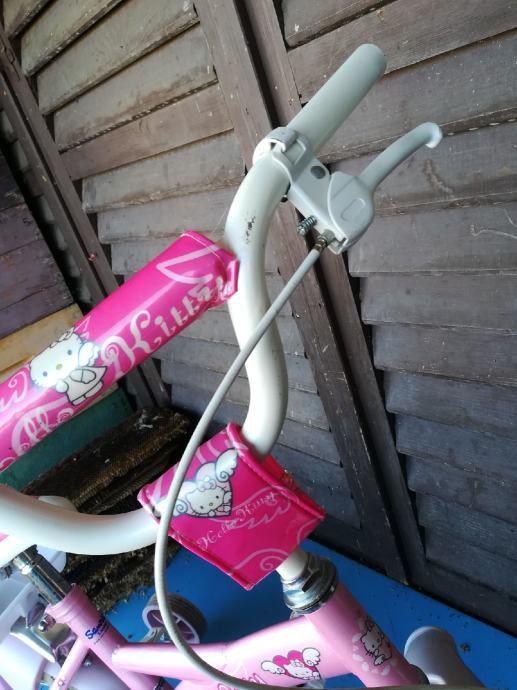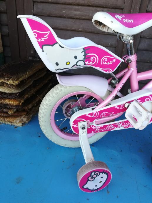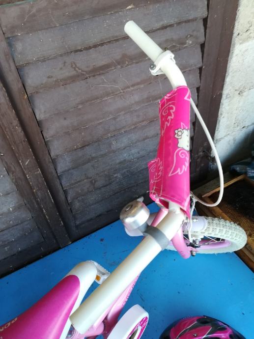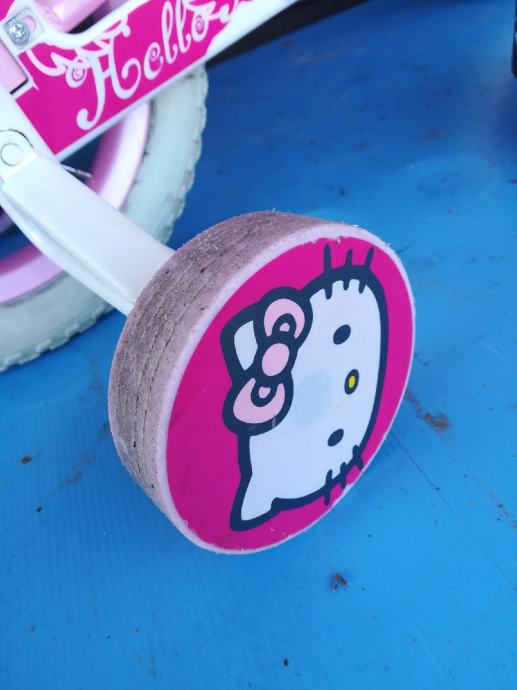 Bicikl za djevojčice, Hello Kitty sa pomoćnim kotačima i kacigom. Veličina kotača 12 i 1/2, bicikl je dobro očuvan. Sic ima mala oštećenja i na governalu je boja ponegdje oštećena (sve je to vidljivo na fotkama). Cijena je fiksna. Na sms nemogu odgovoriti, najbolje bi bilo da me nazovete 099 687 5657 ili pošaljete poruku preko Njuškala.