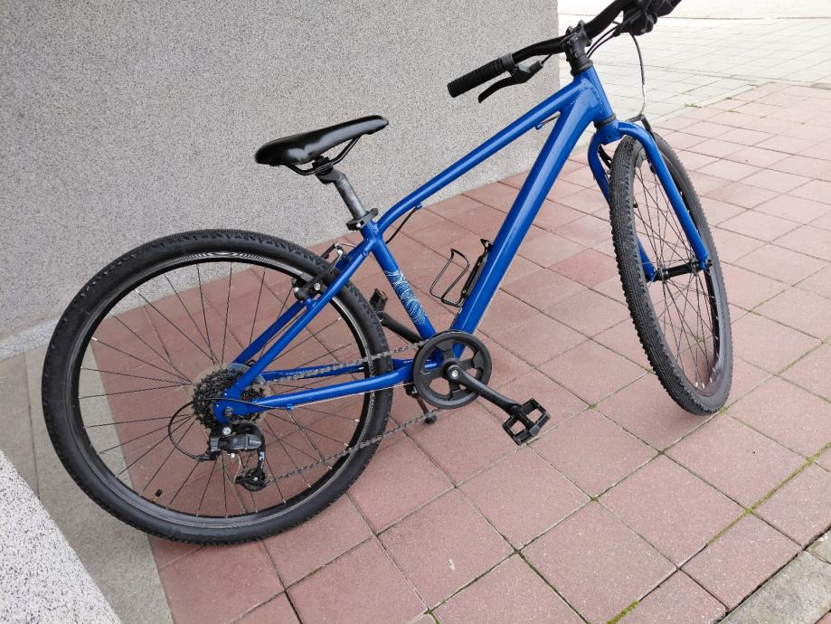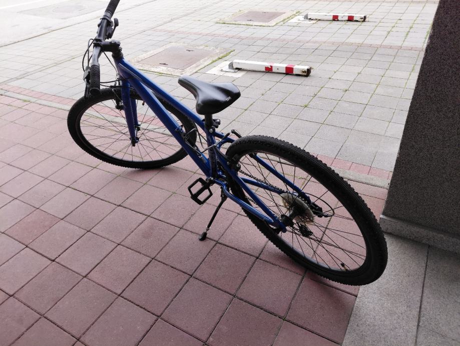 Prodajem dječji bicikl Riverside 900 s kotačima od 26 inča. Radi se o korištenom biciklu plave boje s mjenjačem brzina i terenskim gumama. Okvir je čvrste konstrukcije, a bicikl dolazi s postolje za parkiranje.