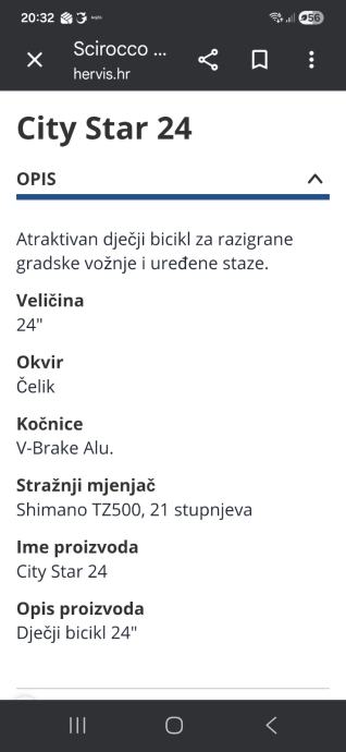 Prodajem djecji bicikl Scirocco City Star 24. Jedino ostecenje je prekinuta zica dinama. Novi u hervisu dodje 300EUR.