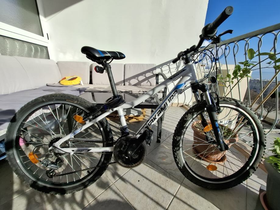 Prodaje se dječja bicikla bijelo-sive boje, malo vožena, 24 inča. Marka Nakamura.