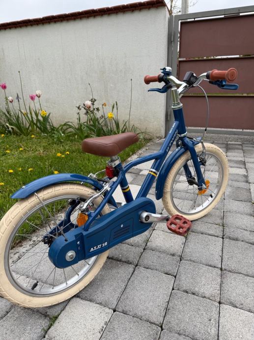Predivan i očuvan dječji bicikl. Aluminijski bicikl 16 inča za djecu 105 do 120 cm visine, težak samo 7,3 kg. Super za gradsku vožnju i za učenje vožnje bez pomoćnih kotača
