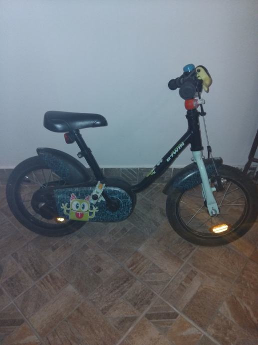 Prodaje se dječji bicikl veličine kotača 14 cola, jedna brzina, pogodan za djecu od 3 do 4 godine. U urednom stanju. Uz njega dolaze i pomoćni kotači.