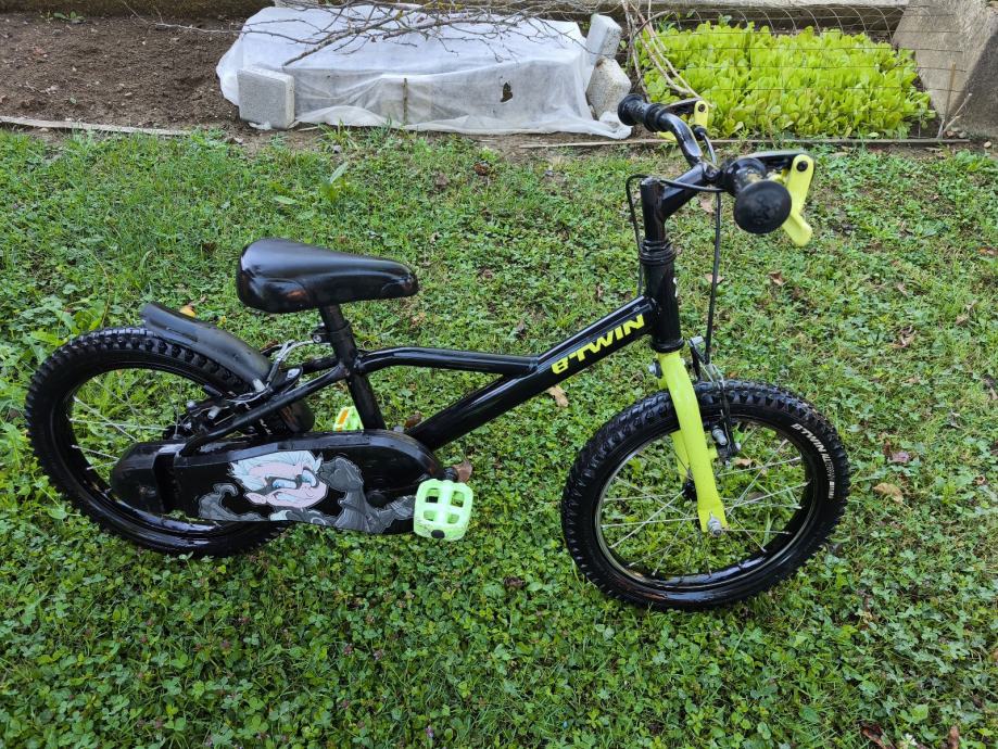 Dječji bicikl Btwin, kotači veličine 16", prednja i stražnja ručna kočnica, gume odlične, sjedalo ok! Bic ispravan i spreman za sezonu!