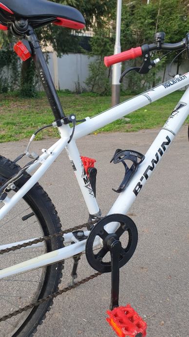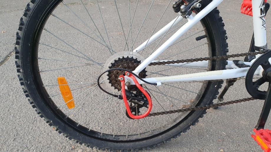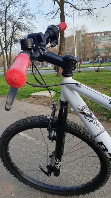 Bogat opremom (nosač bidona, nogara, svjetla, zvonce, V-kočnice za snažno kočenje, štitnik lanca, MTB gume).