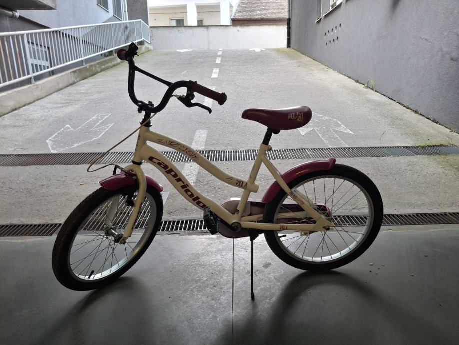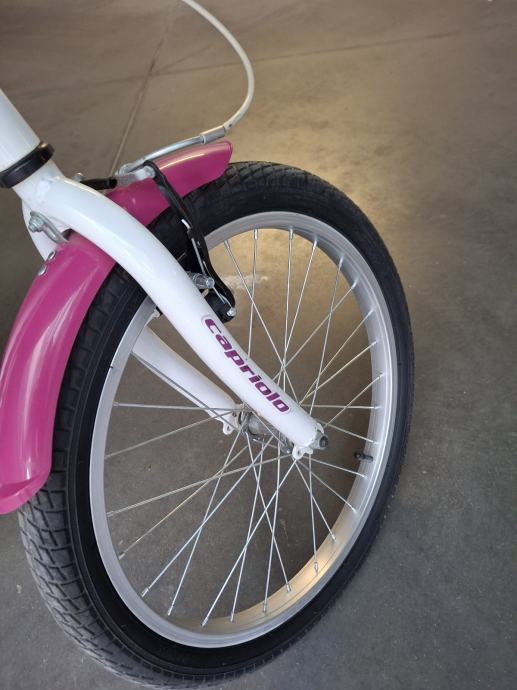 Prodajem dječji bicikl Capriolo Viola s kotačima veličine 20 inča. Radi se o modelu bijele boje s ružičastim detaljima.