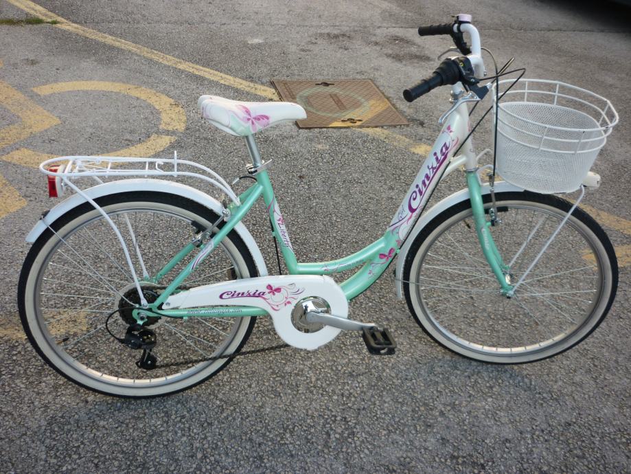 Ženski dječiji bicikl Cinzia Liberty Green , promjer kotača 24". Prekrasan i jako očuvan. 6 brzina, Sve ispravno jer je jako malo korišten. Stanje 9/10. Dodana je košara koje se može po želji i skinuti.