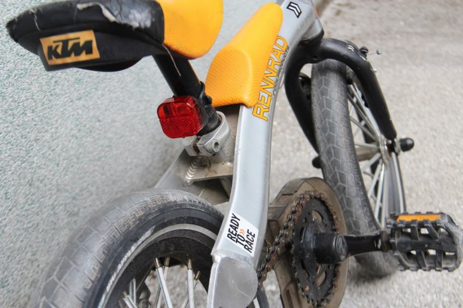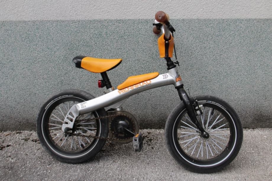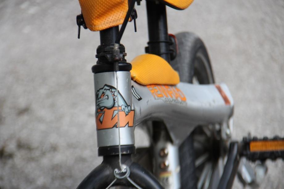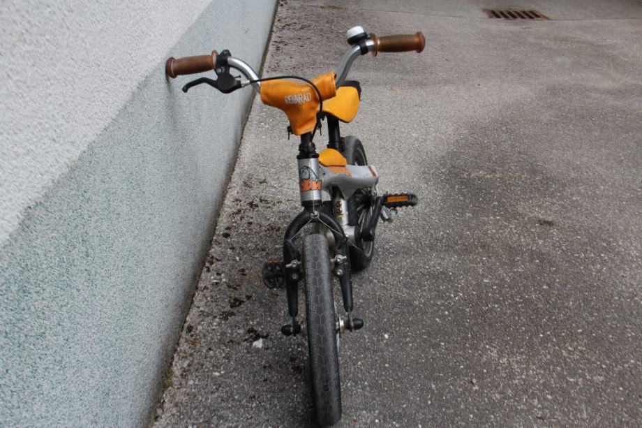 Sportski, u srebrenoj boji, napravljen od aluminija visoke čvrstoće sa 14" felgama i Schwalbe gumama te KTM brandingom. Idealan za dinamičnu vožnju jednom kad dijete nauči voziti i dobije pouzdanje. Bicikl ima kočnicu, zvonce te zadnje pozicijsko svjetlo kao i reflektivne 3M umetke na žbicama za sigurnost u prometu.