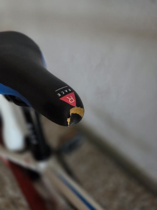 U dobrom stanju osim što je sjedalo malo oštećeno kao što se vidi na slici. Aluminijska rama.