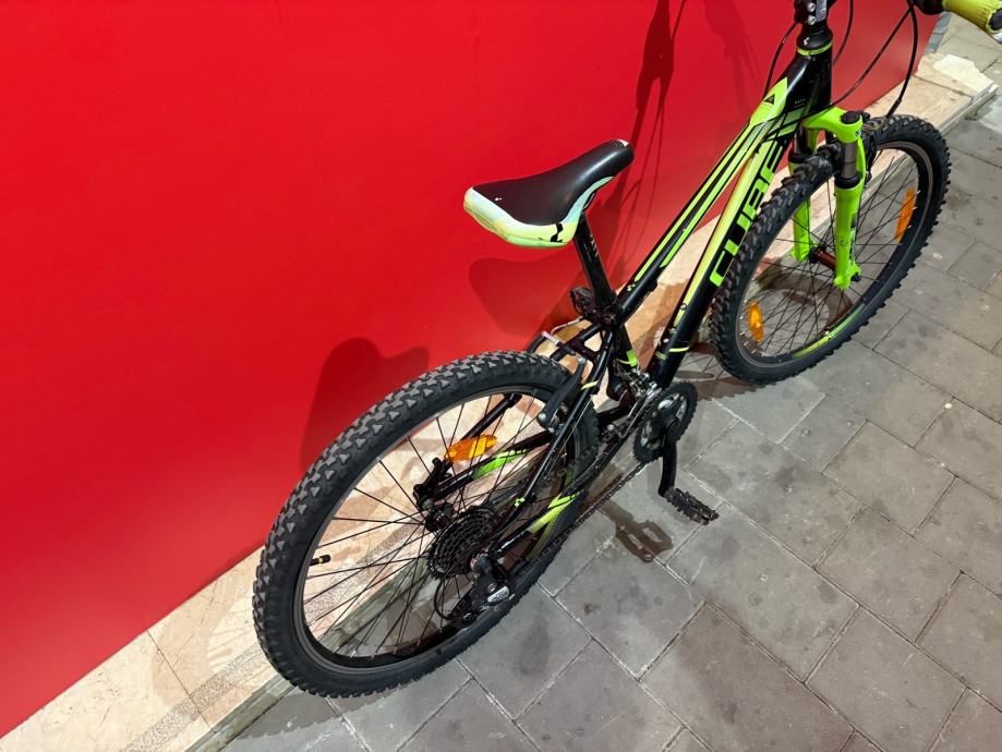 Prodajem dječji MTB bicikl CUBE Race R s kotačima veličine 24 inča. Radi se o crno-žutoj (neon) kombinaciji boja koja je karakteristična za ovaj model. Bicikl dolazi s prednjom amortizacijskom vilicom, mjenjačem brzina i terenskim gumama pogodnim za različite podloge. Veličina kotača od 24 inča odgovara školskoj djeci.