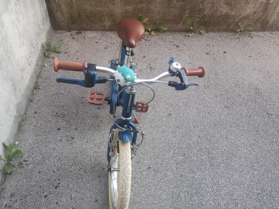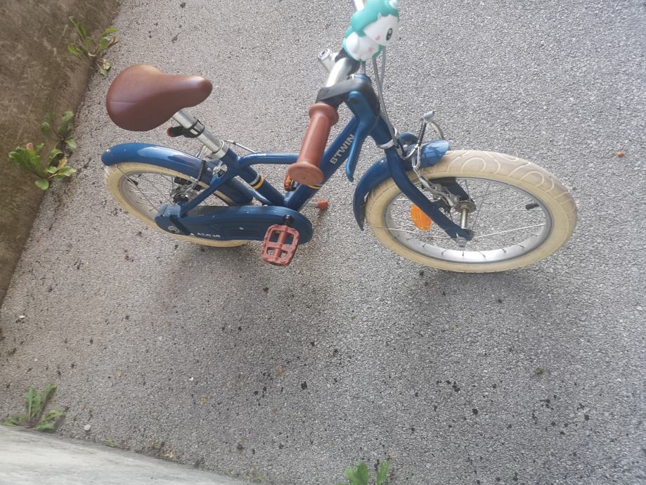 Prodajem rabljeni dječji bicikl Decathlon btwin city 900 s kotačima od 16 inča. Bicikl je plave boje s krem gumama i smeđim sjedalom, idealan za male vozače. Unatoč korištenju, bicikl je u dobrom stanju i spreman za nove avanture. Uz bicikl poklanjamo sjedalicu za lutku/bebu.