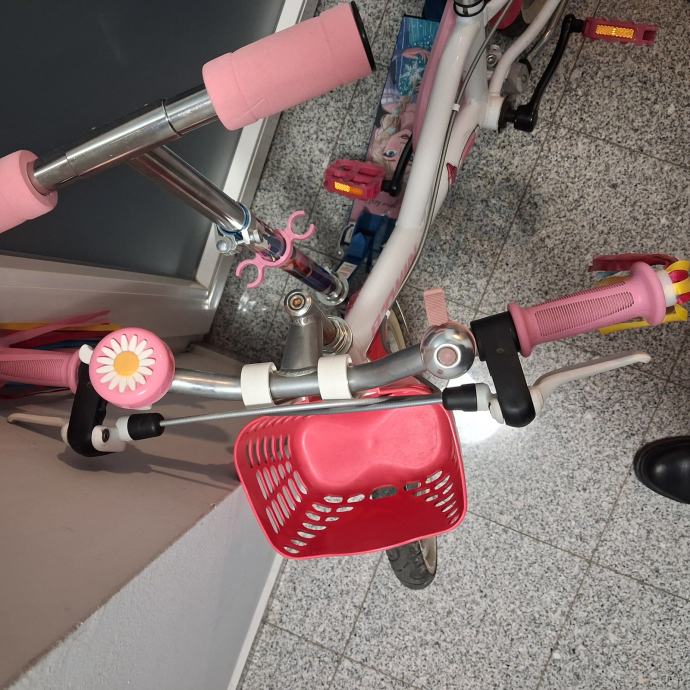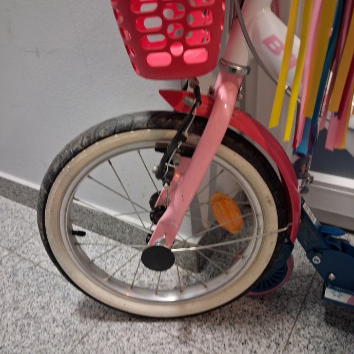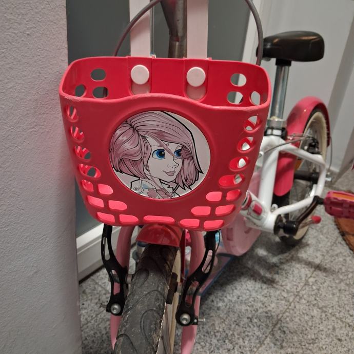 Bicikl korišten jednu sezonu od strane djevojčice, pogodan za učiti voziti bez pomoćnih kotača, podesivo sjedalo, stanje kao na slikama