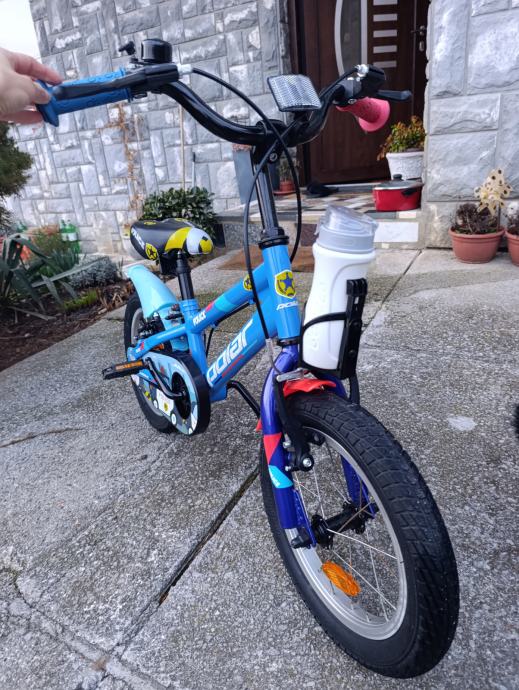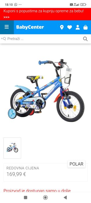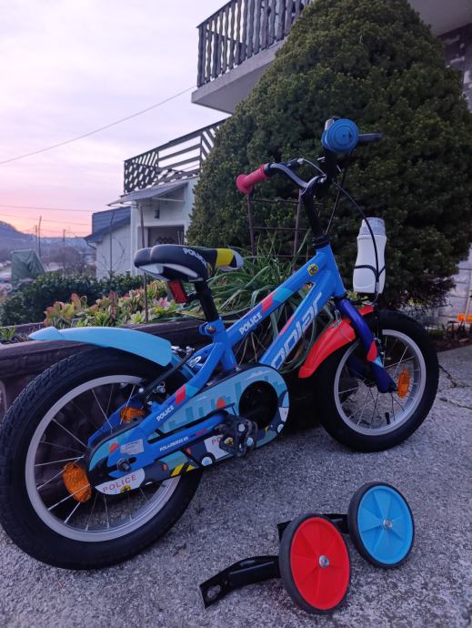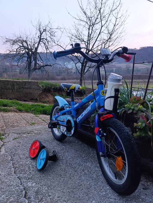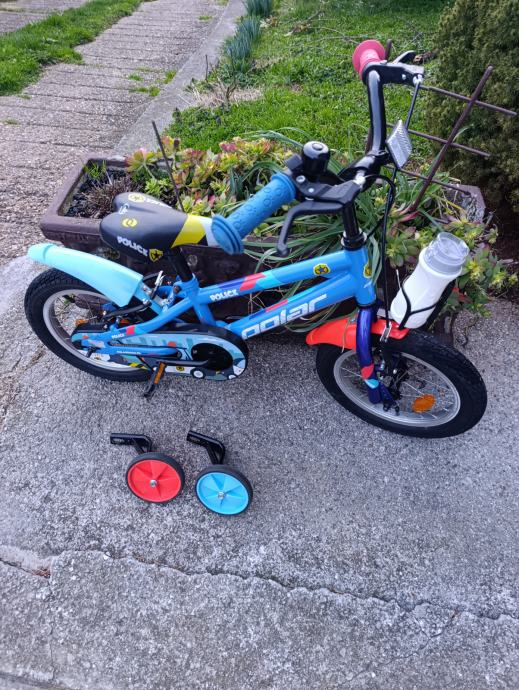 Kao nov ,14 cola ( 3-4 god ) kupljen u Baby centru za 169 eura ,dijete preraslo ,slabo korišten ,s pomoćnim kotačićima koji se skidaju.80 e fiksno