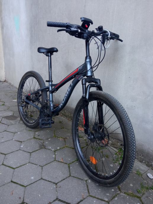 Prodajem dječiji bicikl Romet Fit s kotačima veličine 24 inča. Radi se o biciklu tamnosive boje s crvenim detaljima, opremljenom prednjom amortizacijskom vilicom i disk kočnicama. Mjenjač brzina omogućuje prilagodbu vožnji različitim terenima.Bicikl je u vrlo dobrom stanju.