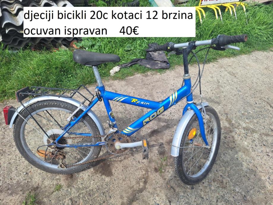prodajem djeciji bicikli kotaci ravni 20 coli gume dobre ima 12 brzina sve ispravno kao i obje kocnice cijena 40 eura fixno
