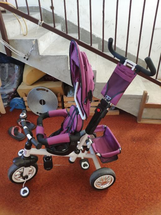 Kao nov. Malo korišten. Može se odvojiti svaki dio pa dijete može samostalno voziti.