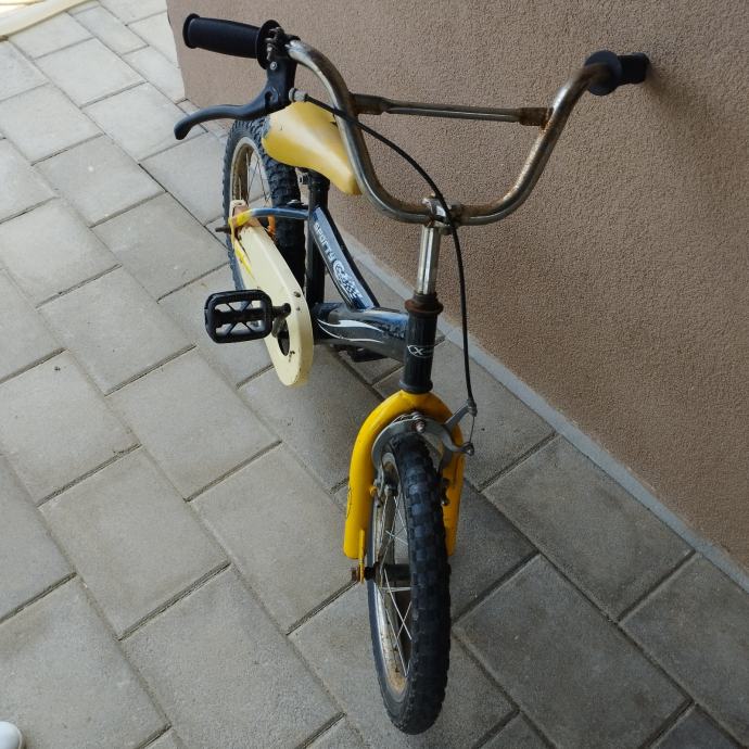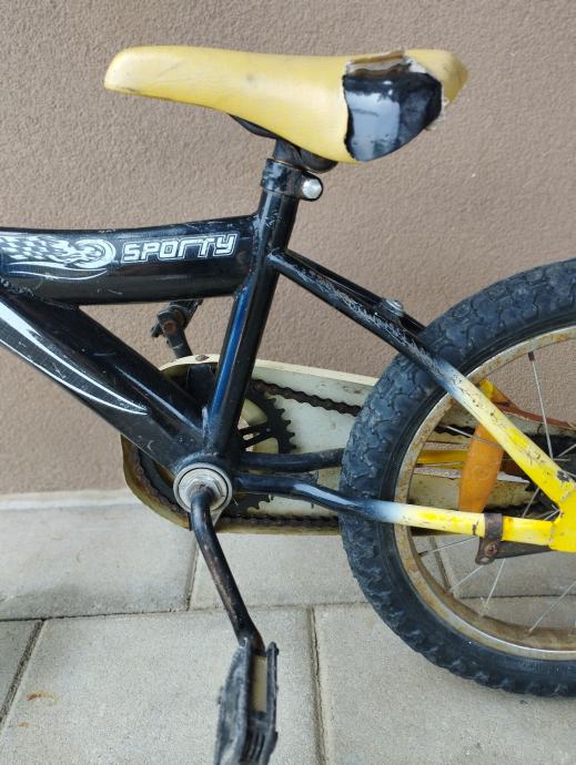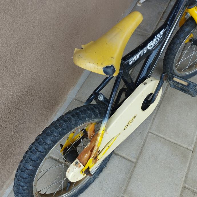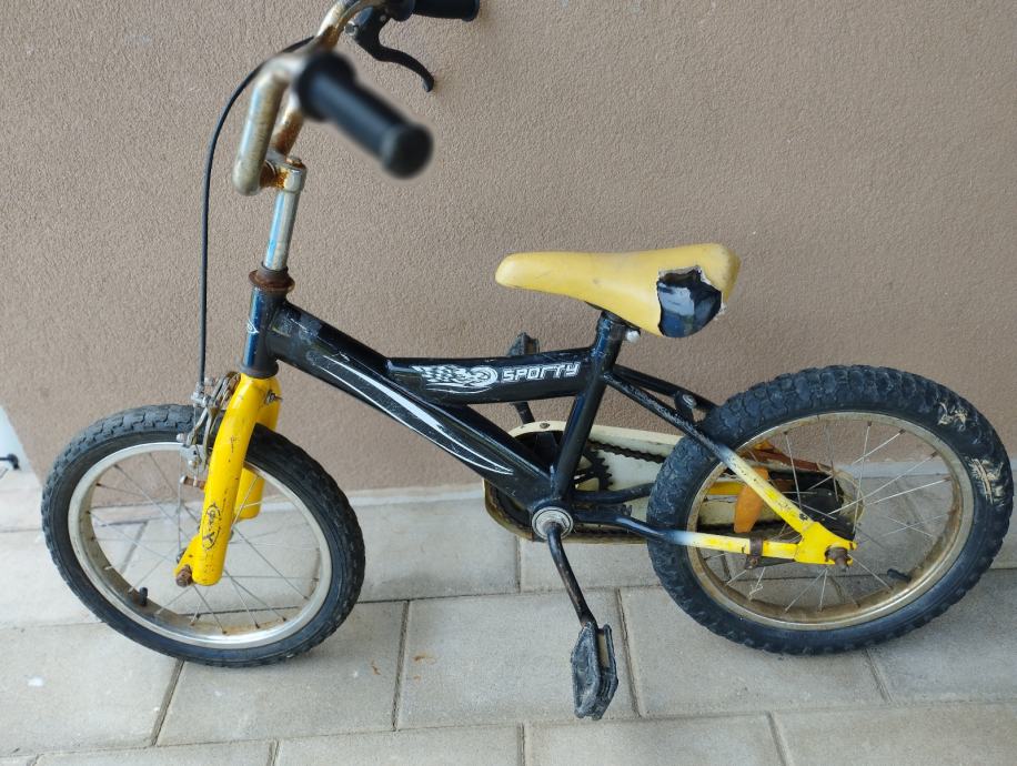 Ispravan bicikl,gume ne puštaju,kočnice rade,hrđav i zguljen od upotrebe i igre,ali i dalje radi dobro. Jeftino,nama netreba,veličina za djecu od 5 god. do 9-10 god.