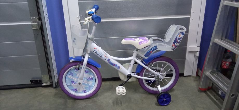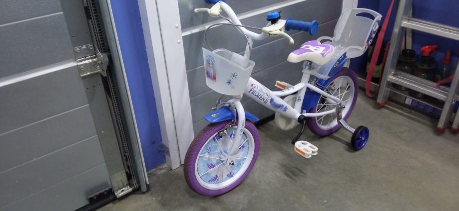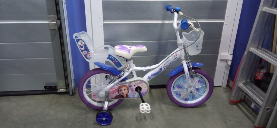 Prodajem dječji bicikl FROZEN, kotači 14 cola, ima pomočne kotače, košaticu i nosiljku za bebe . Ispravna i uščuvan kao nov.