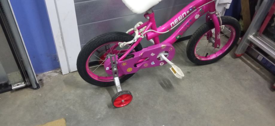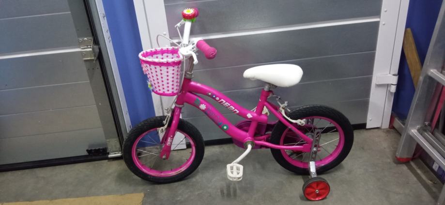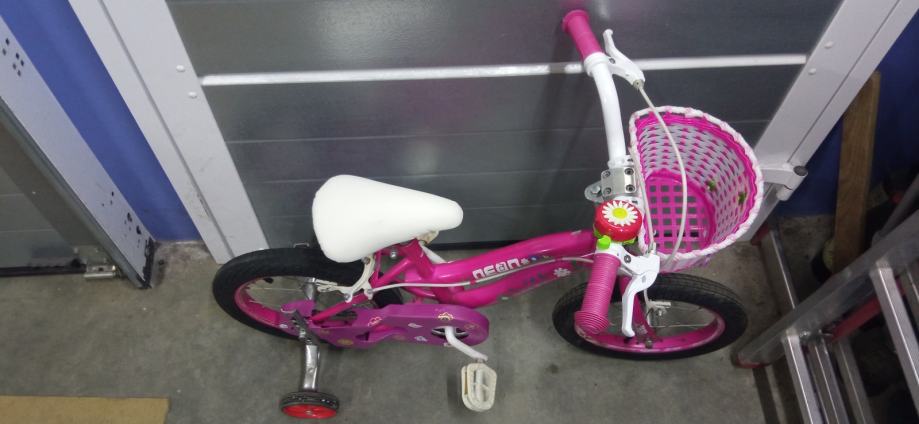 Prodajem dječji bicikl NEON, kotači 14 cola, pomočni kotači, košarica, nove gume, ispravan i uščuvan.