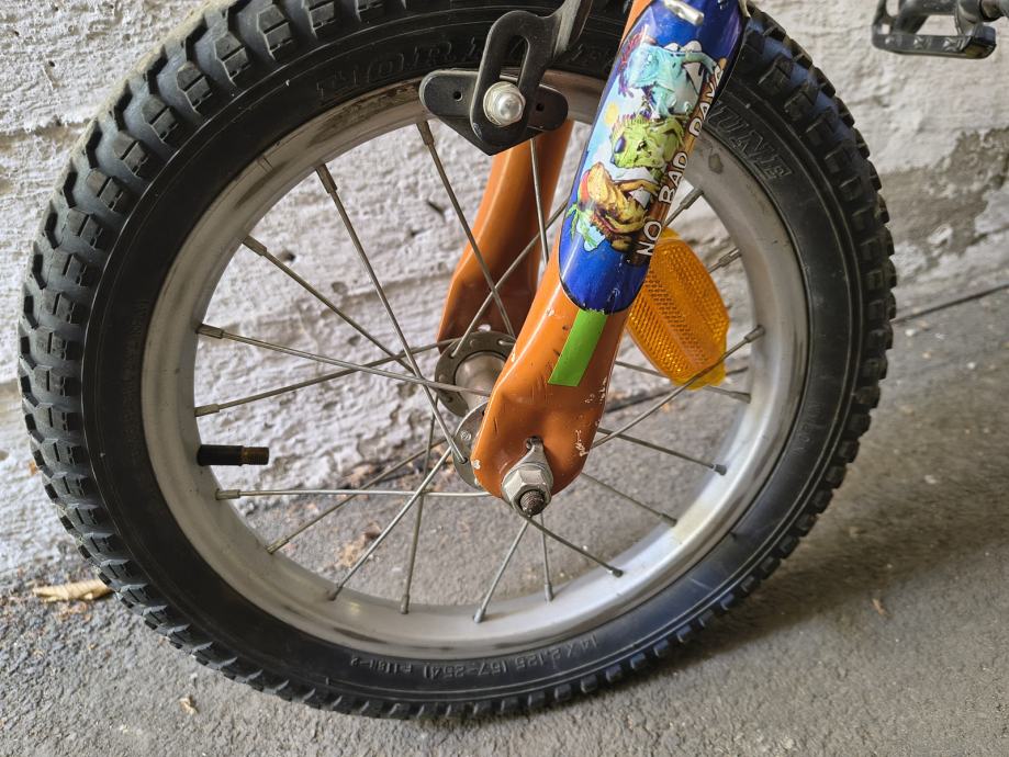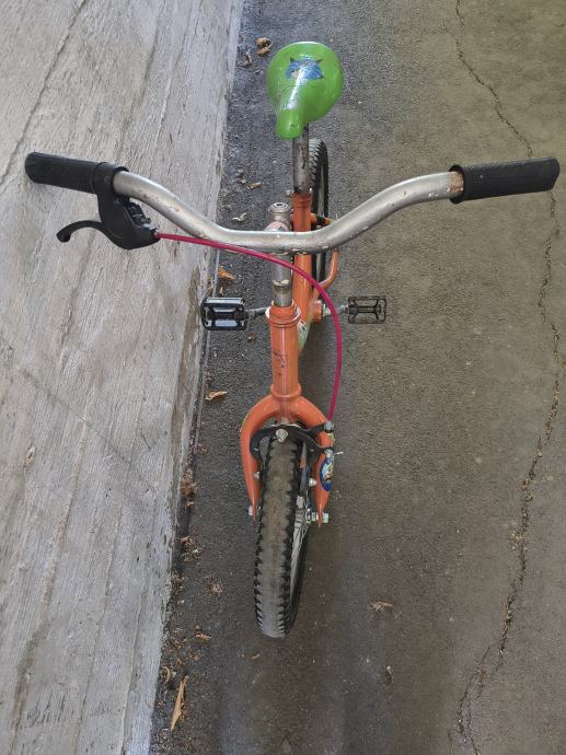 Prodajemo dječji bicikl 14" - ispravan, istrošen ali taman za početnike (4-5 god). Ako je dijete prije vozilo bicikl guralicu može kroz par dana savladati i vožnju sa pedaliranjem.