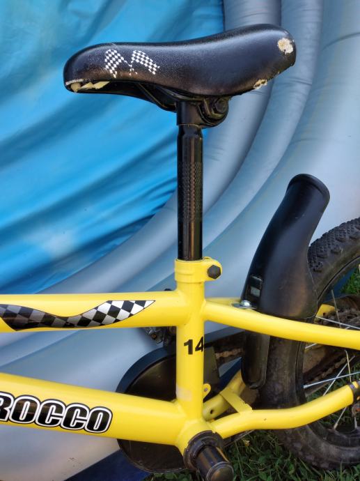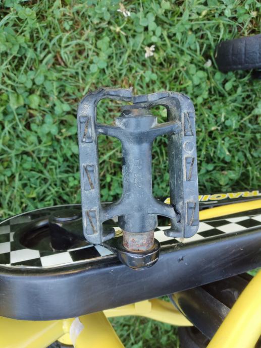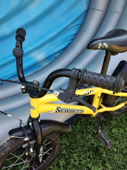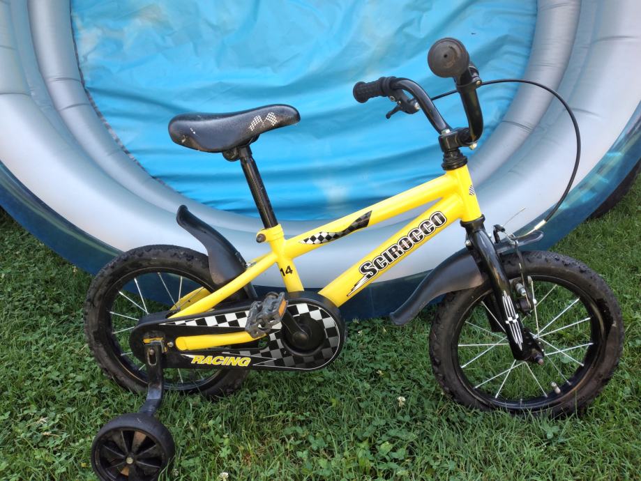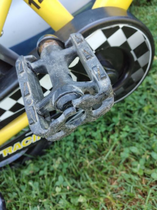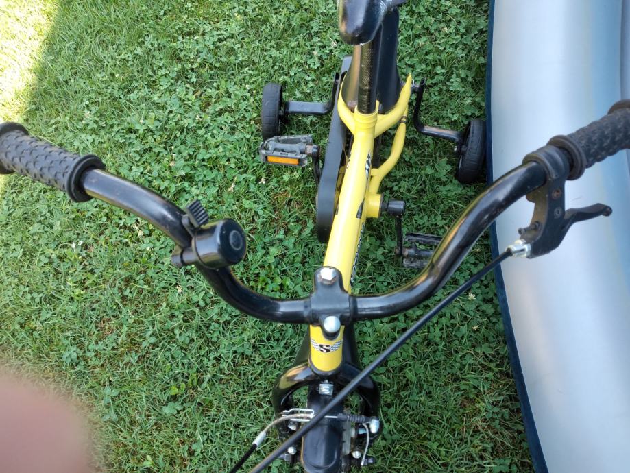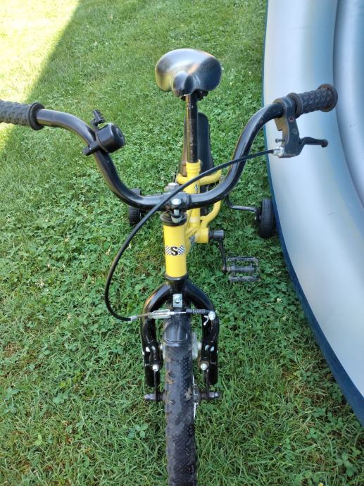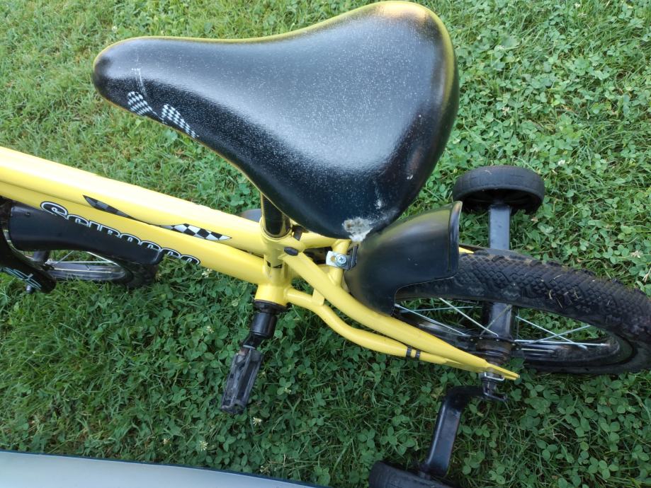 Ima pomoćne kotačiće. Ima oštećenu jednu pedalu i malo sjedalo (vidljivo na slikama).