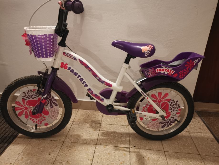 Dječji bicikli, slabo vožen. Stoji u hodniku i skuplja prašinu. Star 1 i pol godinu. Za uzrast od 4 do 6 godina.