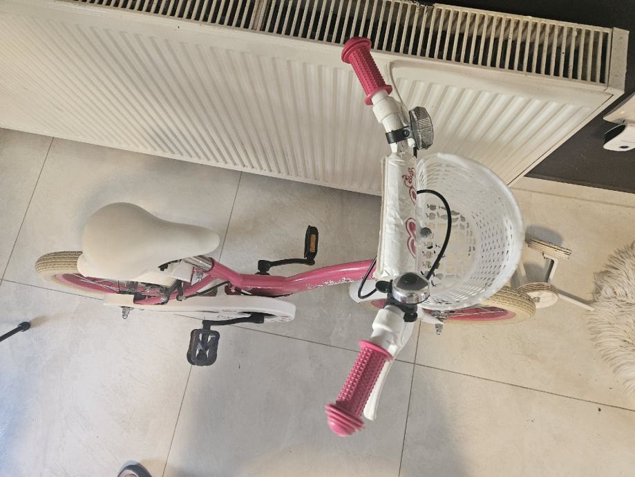 Prodajem dječji bicikl 16 inča. Ima pomoćne kotače, zaštitu za lanac, ručke sa graničnikom da ruka ne bi skliznula, pedala sa širim gazištem, ručne kočnice i prednju košaru. U odličnom stanju.