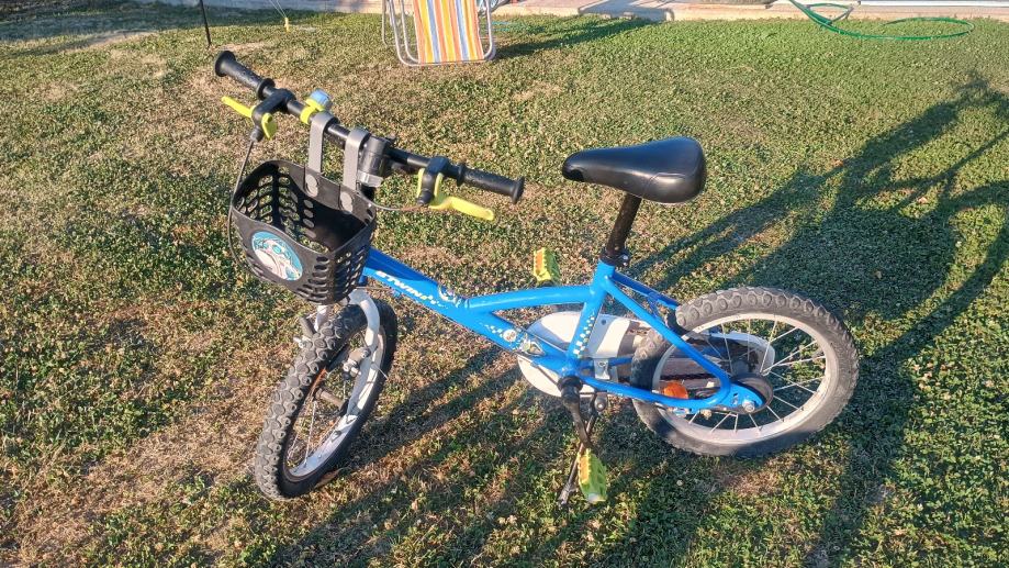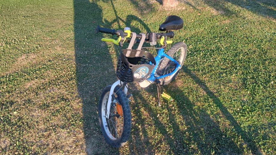 Prodajem dječji bicikl 16", korišten ali ispravan. Idealan za krenut vozit samostalno nakon pomoćnih kotača.Dijete preraslo pa postao višak.