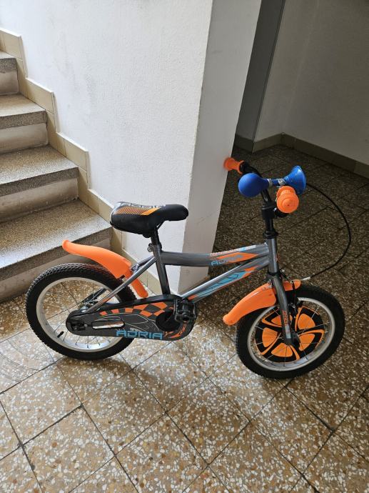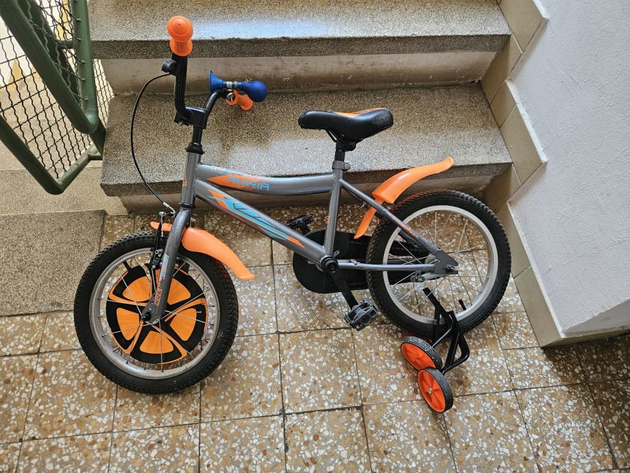 Prodajem korišteni dječji bicikl 16" Rocker Silver Orange s pomoćnim kotačima za djecu od 4-7 godina.