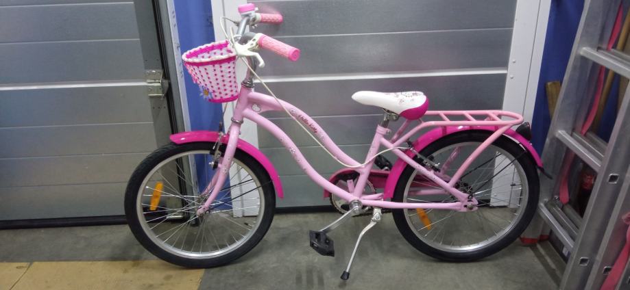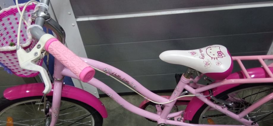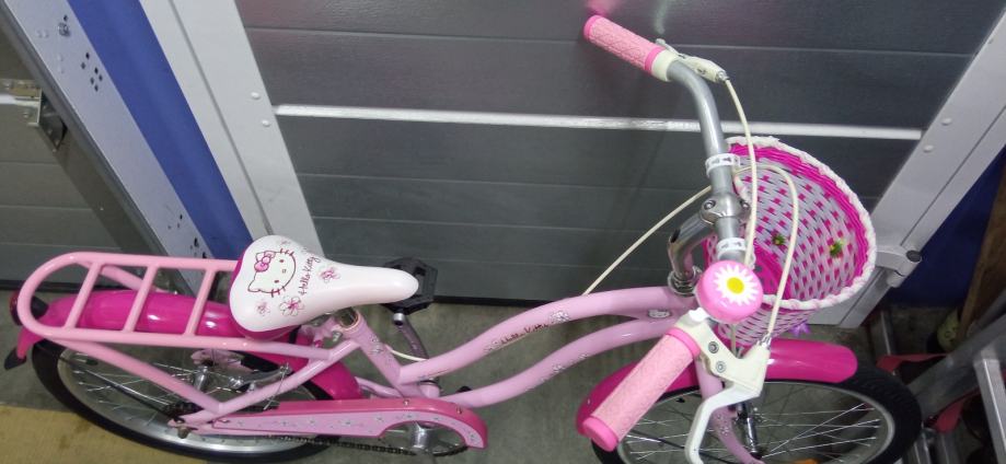 Prodajem dječji bicikl Hello Kitty. Kotači 20 cola, ima košaricu na volanu, blatobrane i nogaru. Ispravan i uščuvan.