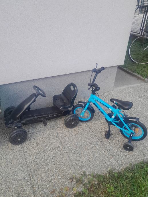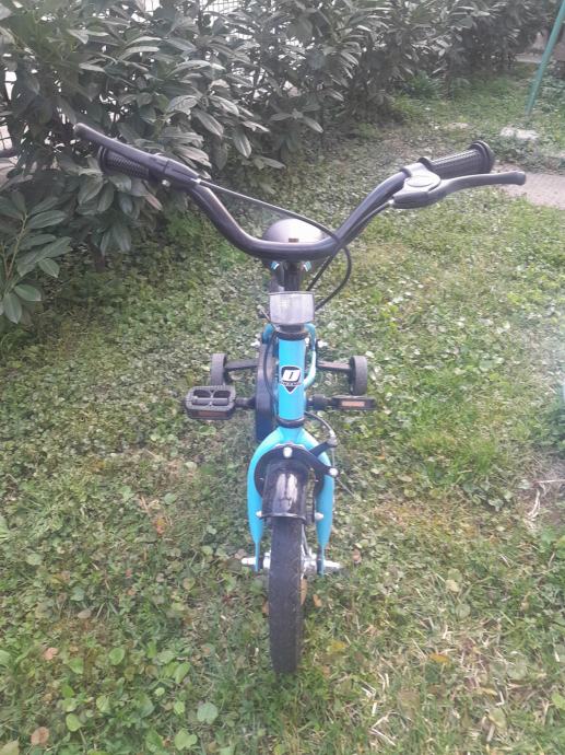 Prodajem plavi dječji biciklić s pomoćnim kotačima koji se mogu skinuti.
