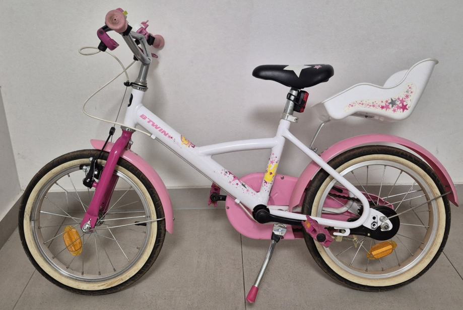Prodaje se rabljeni dječji bicikl BTWIN 16" za djevojčice u odličnom stanju. Uz bicikl dolaze i pomoćni kotači.