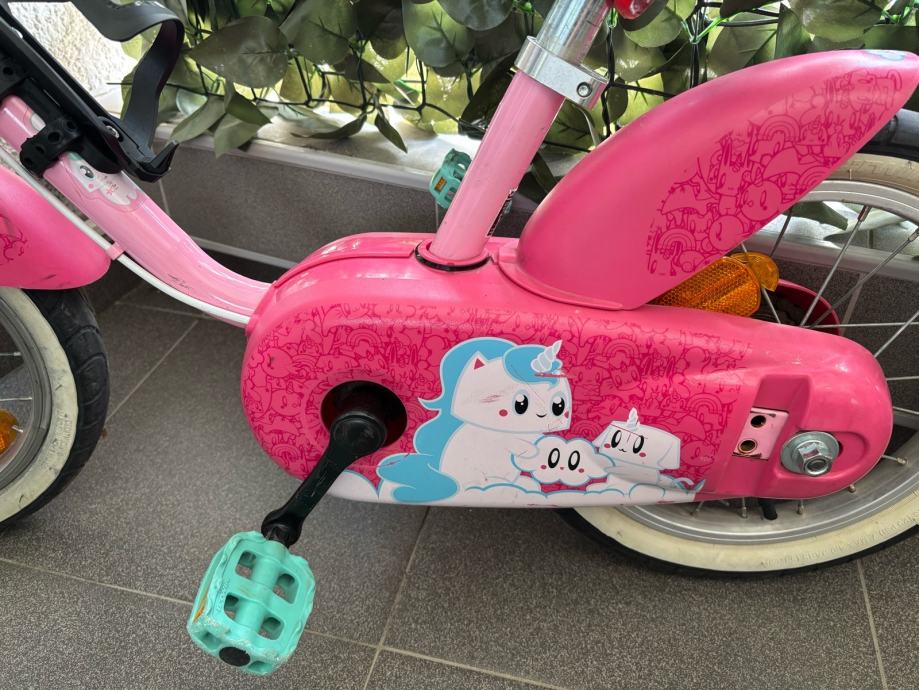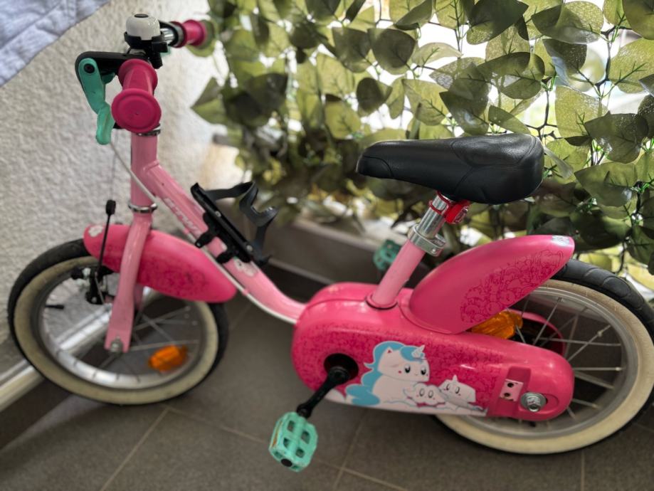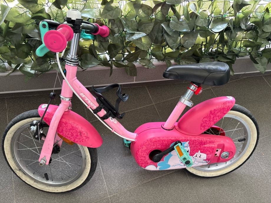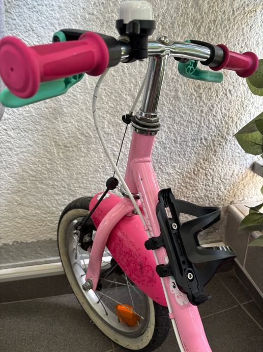 Prodaje se djecji bickl iz Decathlona u velicini 14” za curice. Izvrsno ocuvan. Pomocne kotace nismo imali nikada tako da dolazi bez njih.