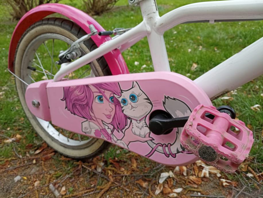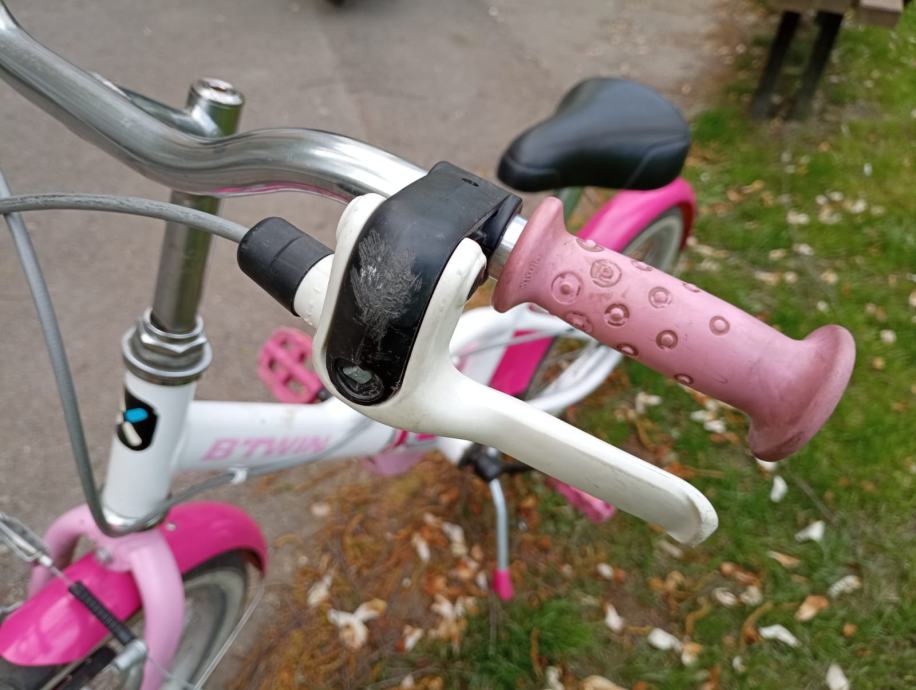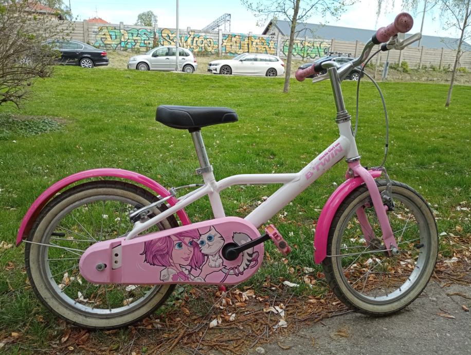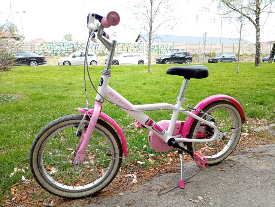 Prodajem dječji bicikl Decathlon BTWIN 500, bijeli i rozi, kotači 16 inča. Korišten ali potpuno ispravan.